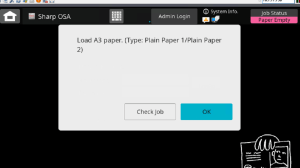 - Click OK to close the error message, then tap Change Paper Size on the copier to force the print (may crop), or